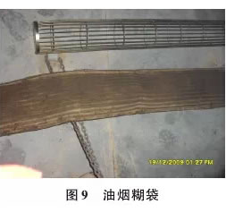 2.4 投運初期缺少預處理造成的濾袋失效 新的除塵器在投運前要采用生料粉對濾袋表面進行預涂層,以免點火時油煙粘附在濾袋表面清除不掉,有些生產線的操作者急于投產,不注重或省略這項工作,造成不可逆轉的濾袋阻力增大,見圖9。 |