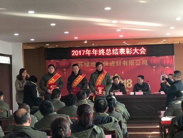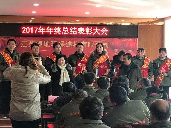 2月8日上午,江蘇綠地環(huán)保濾材有限公司在公司三樓會議室成功召開了2017年年終總結(jié)表彰大會。 會議首先由周金華廠長對全年2017年工作進行了回顧總結(jié),北京公司劉總對2017年工作進行了點評,特邀代表大自然環(huán)保孫總做了重要講話。公司對現(xiàn)場投票產(chǎn)生了8名2017年度優(yōu)秀員工、10年員工進行頒獎并合影。